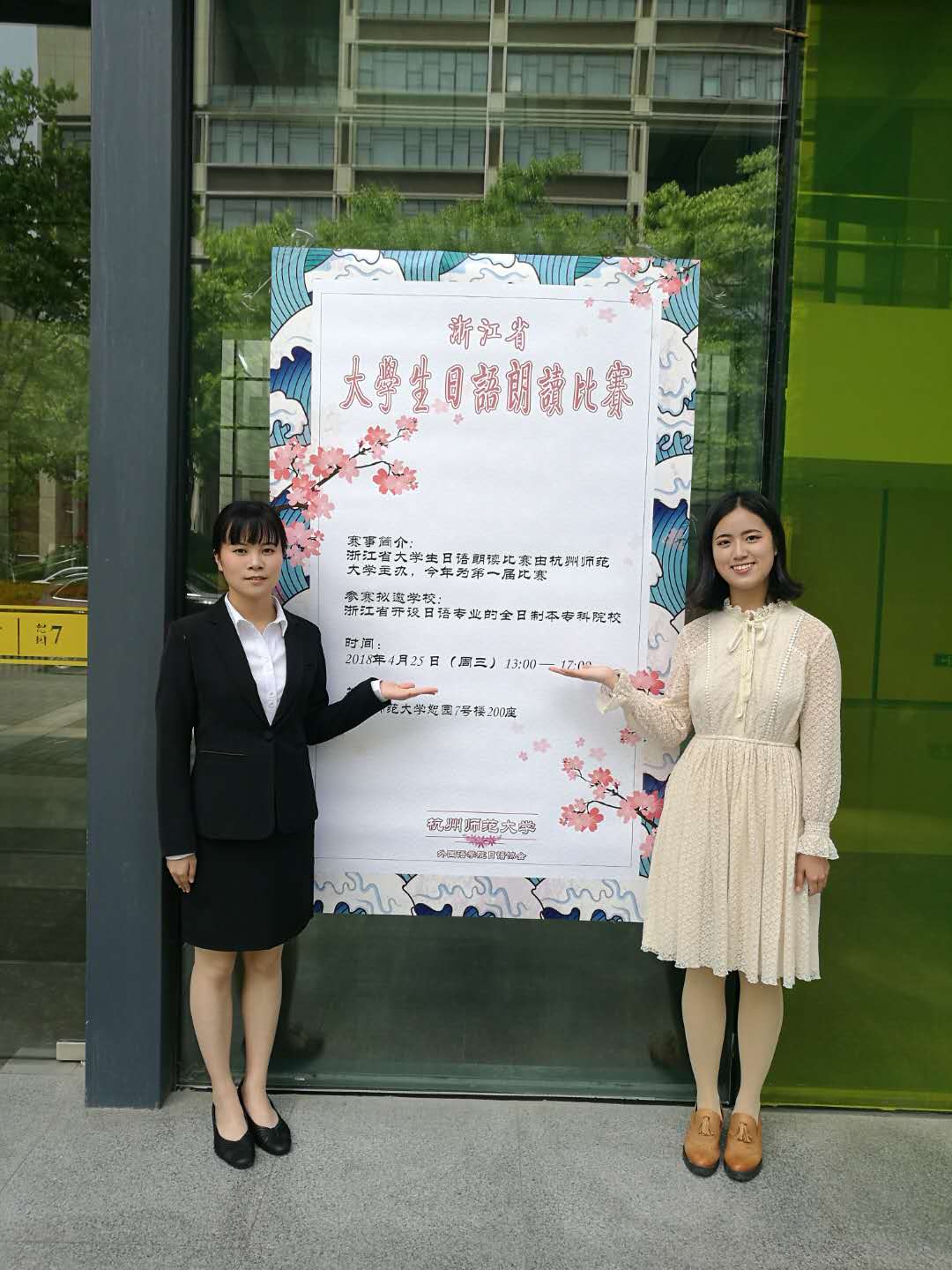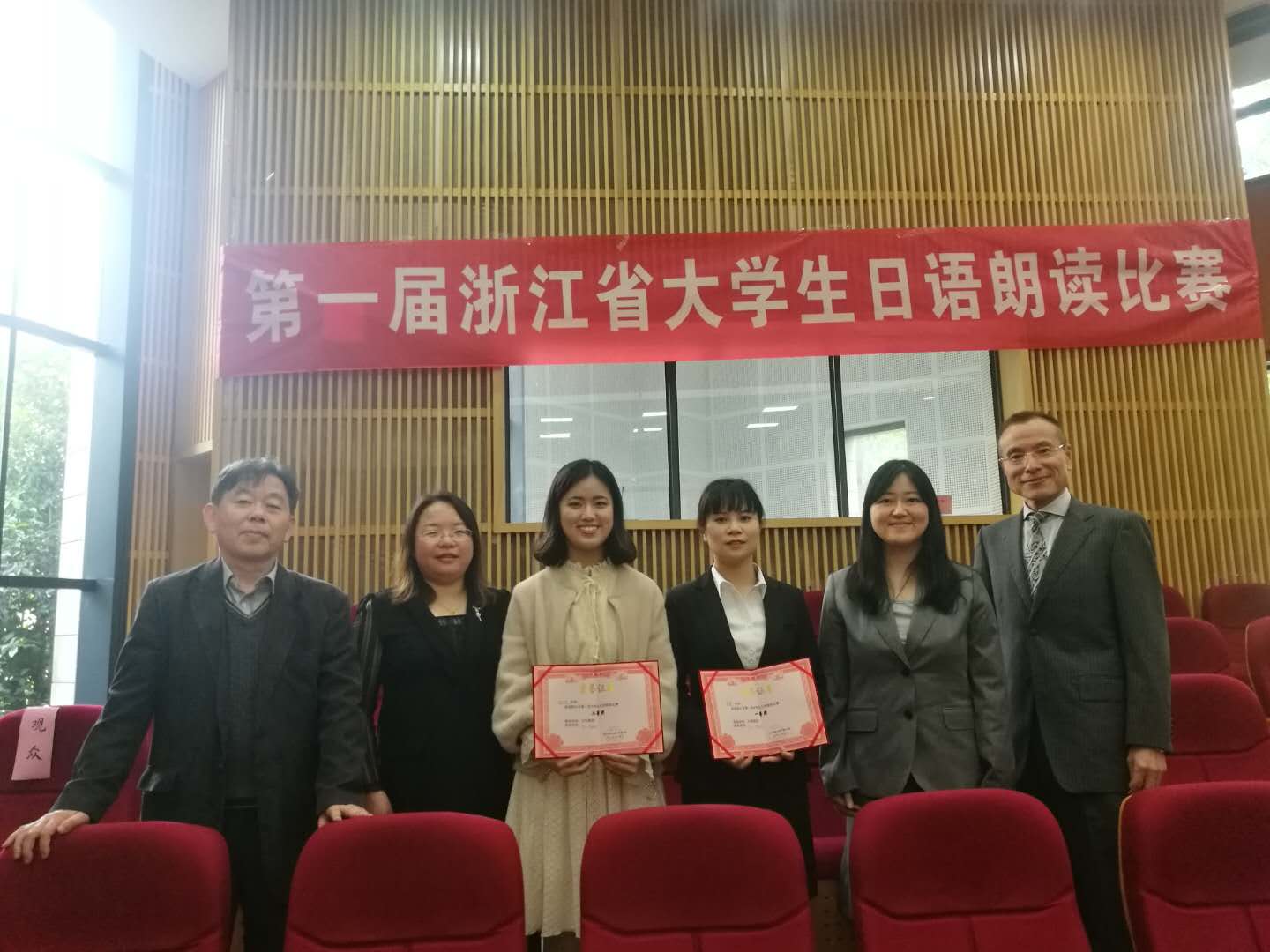 4月25日,浙江省第一届大学生日语朗读比赛决赛在杭州师范大学举行。我院选派的日语1701班黄睿、日语1602班徐可奕分别以第一名、第二名的优异成绩荣获本次比赛一等奖和二等奖。