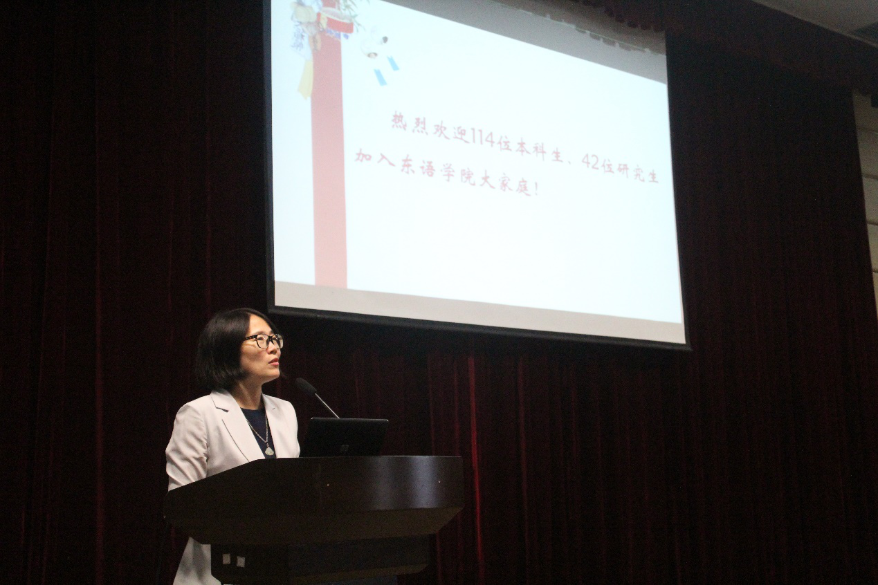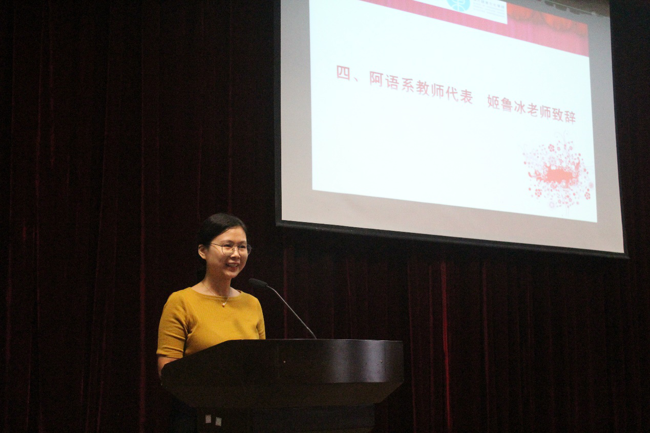 阿语系教师代表姬鲁冰老师致辞时强调大学学习方式有别于高中,希望能让同学们更快地适应大学的学习生活。