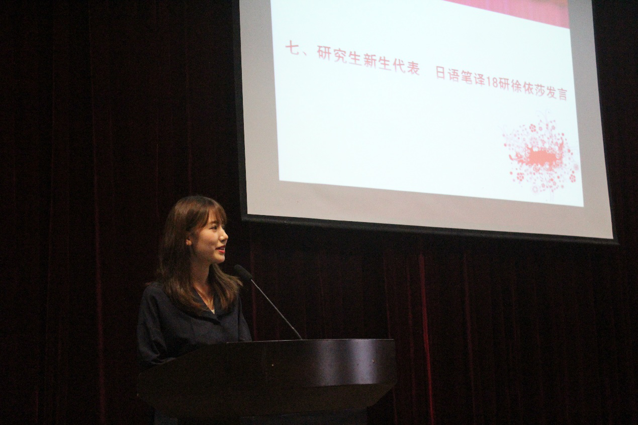 研究生新生代表日语笔译18研徐依莎介绍了自己的学习生活和课外生活,以及她在日本千叶大学的留学经历。