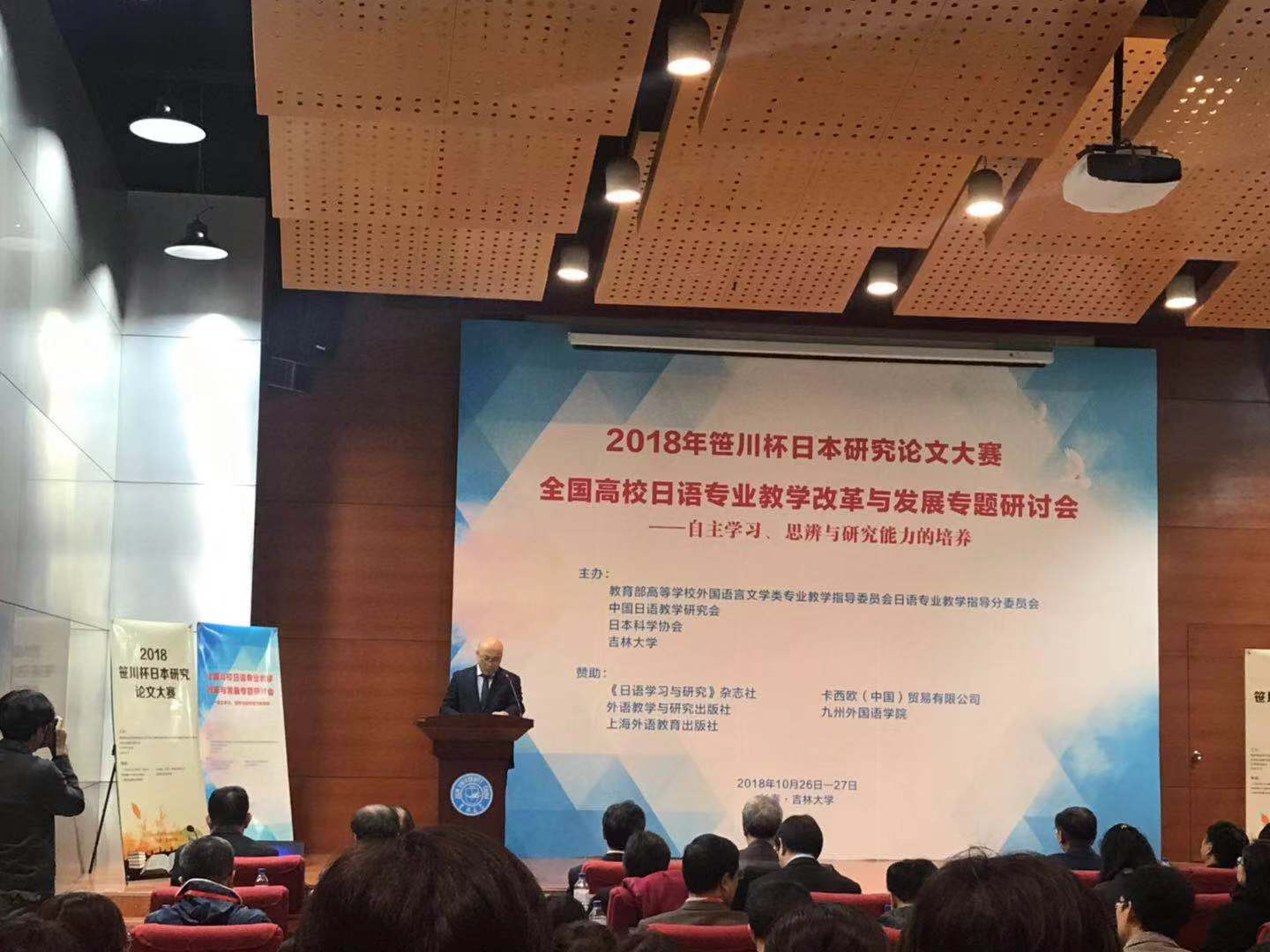 为培养日语专业学生自主学习、思辨及研究能力,由教育部高等学校外国语言文学类专业教学指导委员会日语专业教学指导委员分会、中国日语教学研究会、日本科学协会和吉林大学共同举办的“2018年笹川杯日语研究论文大赛颁奖典礼”暨“全国高校日语专业教学改革与发展专题研讨会”于10月27日在吉林大学召开。