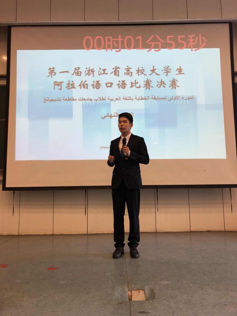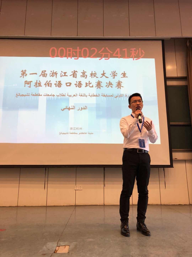 11月10日,第一届浙江省高校大学生阿拉伯语口语决赛在浙江外国语学院举行。来自浙江外国语学院、浙江越秀外国语学院、金华职业技术学院及我校在内的四所高校的16名选手参赛,为大家带来了一场精彩纷呈的口语比赛。