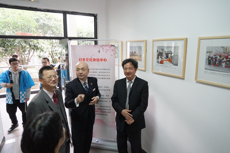 省教育厅外事处调研员杜健、省政府外事办公室领事处调研员王敏也分别代表教育厅及外办对我校举办日本文化周及成立日本文化体验中心表达祝贺并从教育国际化及人文交流方面阐述了中日友好的成果及意义,同时寄语广大师生充分利用中日人文交流领域的相关资源,加强交流互动,为增进两国国民相互理解与友谊作出贡献。