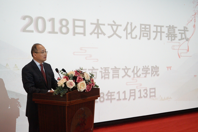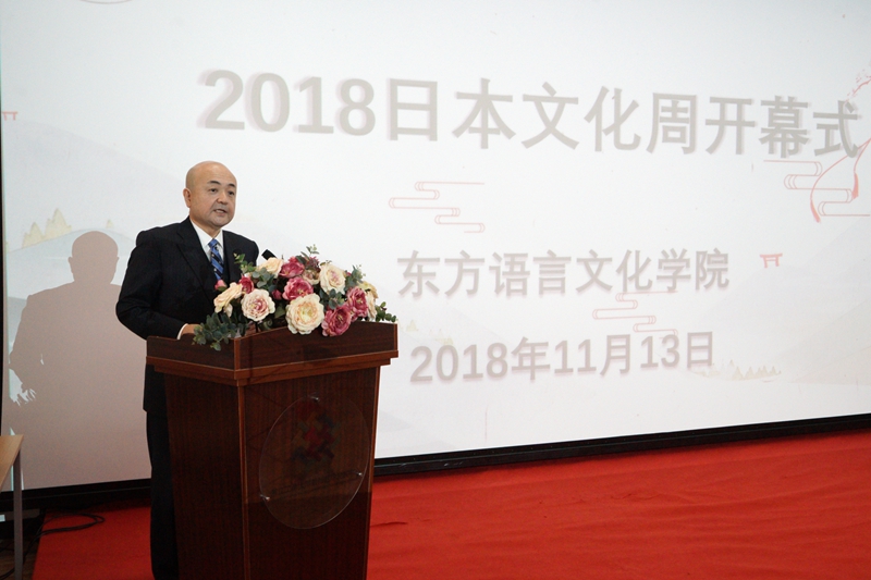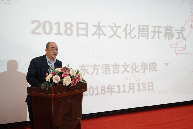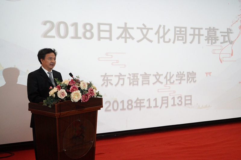 校长陈寿灿在开幕式致辞中向来宾重点介绍了我校东方语言文化学院中日本语专业的发展及日本研究成果。他表示中日两国作为近邻,友好往来已久,在漫长的历史长河中,相互学习借鉴、共同发展是主流,不仅促进了各自国家发展进步,也丰富了东亚文明和世界文明宝库。今年是《中日和平友好条约》缔结四十周年,广泛开展各领域人文交流,推动民心相通,有利于增强两国人民和国际社会对中日关系的良好预期和信心。他希望以此为契机举办的“2018日本文化周”能够进一步深化中日文化交流,促进两国人民相互理解,为中日和平友好合作做出新的更大的贡献。