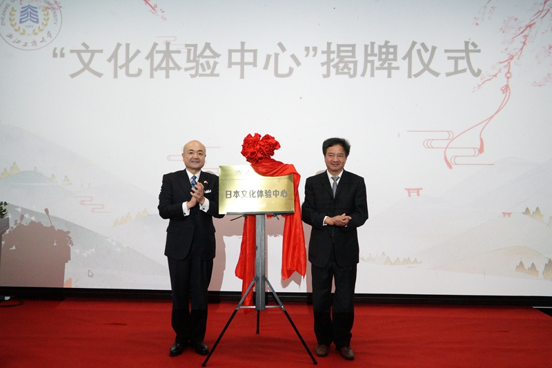 11月13日下午,我院日本文化体验中心正式成立, 学院承办的学校日本文化周由此拉开序幕。日本国驻上海总领事馆总领事片山和之和我校校长陈寿灿为中心成立共同揭牌,省教育厅外事处调研员杜健、省人民政府外事办公室领事处调研员王敏、杭州日本人学校校长大西一人及我校相关学院及部门负责人出席仪式。仪式由学院党委书记周宏力主持。