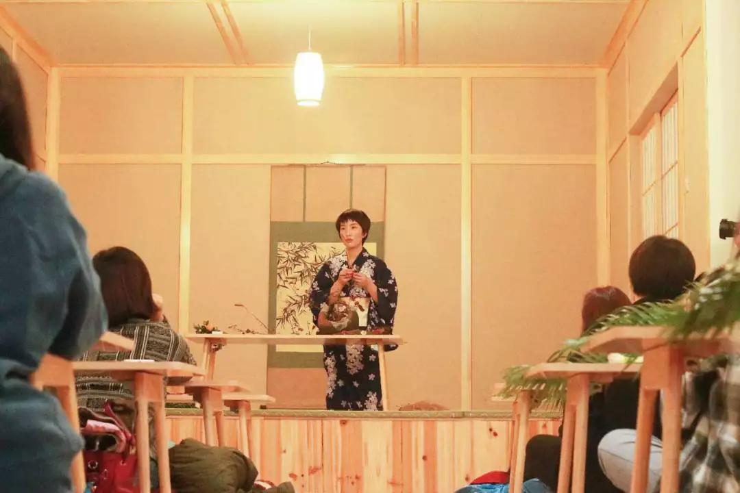 王老师详细介绍了西式花艺与日式花道的区别,以及池坊作为日本花道三大流派之一的起源和发展过程,还有自身在学习花道经历中的感触。
