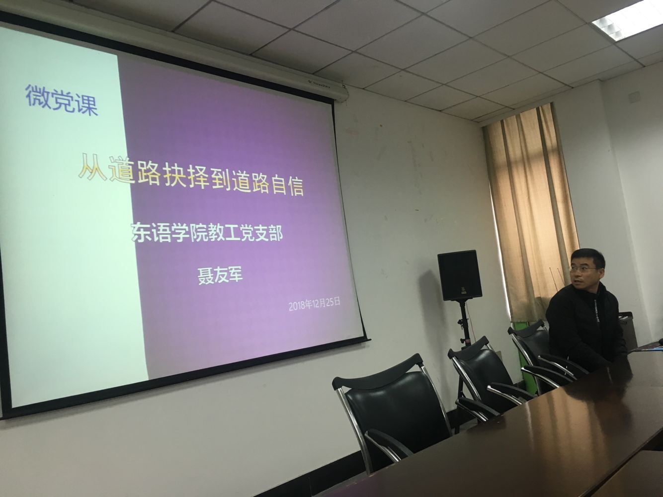 最后,学院党委书记周宏力对比赛进行总结。他强调,作为新时代的大学生,应该积极主动投身于祖国发展和民族复兴的事业之中,应该牢固树立爱党爱国意识,为国家的强大而不懈奋斗。会议期间还举行了全体党支部书记2018年度工作述职。