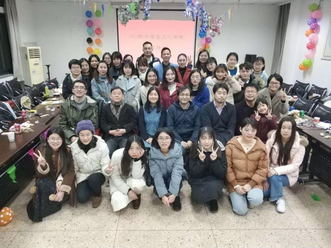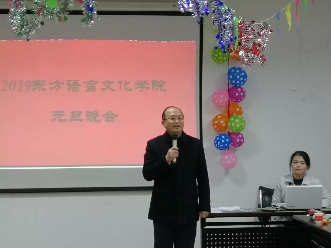 2018年12月28日晚,学院楼202会议室传来了阵阵欢乐声,期待已久的、由院研究生会主办的东方语言文化学院迎新年晚会拉开序幕,党委书记周宏力、副院长吴玲、董科应邀出席。全体18级研究生及东亚研究院副院长陈小法、学院学生工作办公室主任兰大伟、学院办公室主任明薪、外事秘书丁之群、研究生秘书谢咏、日语系李国栋、外籍教师松代章、久保辉幸等老师出席了本次晚会。