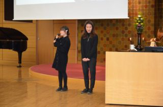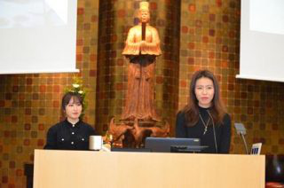 1月16日,在日本秋季学期即将迎来尾声的日子,正在四天王寺大学交换留学的我院日语笔译17级研究生邹逸馨、日语1502班黄于鑫在该校大讲堂向全体大一学生(一千余人)发表了以“日本留学生活感想”为题的演讲。她们结合自身留学的经验,以及在日本留学和生活的体会、中日两国文化间的异同展开演讲。