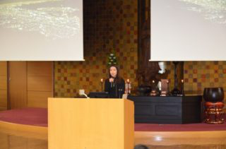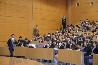 两位同学在如此大的讲堂中,面向该校的大一全体学生(含留学生)发表了演讲。她们熟练地用日语进行演讲,同时还制作了简单易懂的PPT。在演讲结束后,还回答了日本学生们提出的问题。日本学生对她们的日语水平做出了极大的肯定,同时也知道了通过留学可以学到非常多课本之外的东西。(素材来源于四天王寺大学网站,由邹逸馨同学翻译,兰大伟老师编辑后发布)