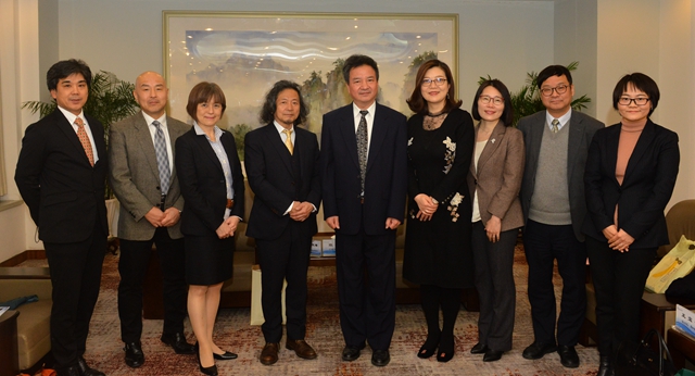 2月28日下午,日本二松学舍大学文学部长江藤茂博教授,中国学专业主任牧角悦子,教学事务副部长小西明徳,国际交流中心副室长齐田智明访问我校。校长陈寿灿教授会见来宾,校国际交流与合作处负责人及我院院长江静教授、名誉院长王宝平教授等参加会见。