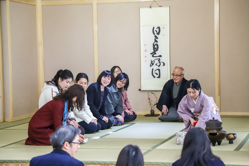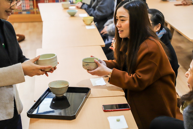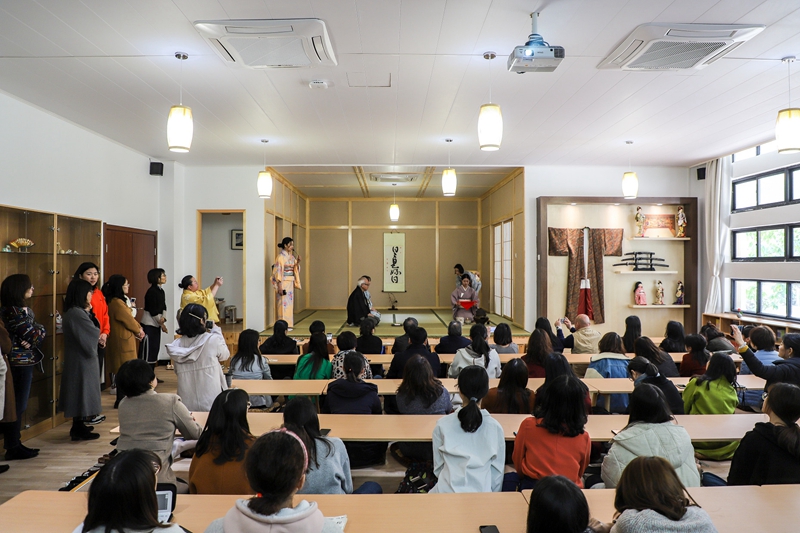 3月11日,学院在E教学楼日本文化体验中心举办日本茶道体验会(里千家)。本次日本茶道体验中心由校工会主办、我院分工会承办,校党委副书记李军、校工会主席金世灯、我院院长江静、副院长吴玲及来自全校各部门、各学院的30多位老师、我院30多名学生及日本千叶大学来我校交流学习的8名学生参加了本次茶道体验会。