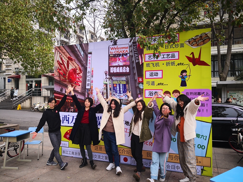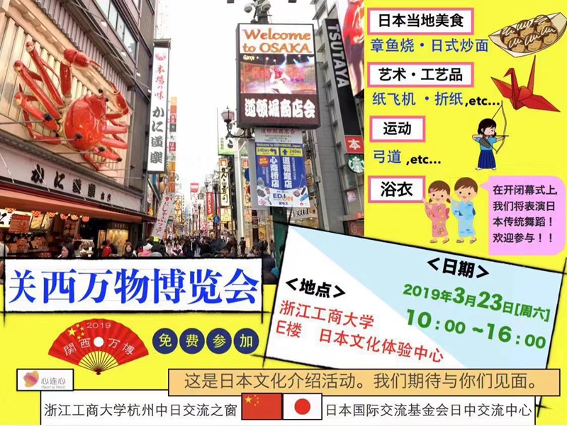 本次大阪万博会由空姐 、日本国际交流基金会杭州“心连心”中日交流之窗项目联合举办,以"关西时代"为主题。一大早,日本文化体验中心门前就聚集了不少同学等待着活动开始。