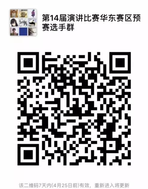 8. 选手微信群:请各位参赛选手扫描附件中的二维码入群(7天内有效),接下来后续通知和联系将在微信群内进行。