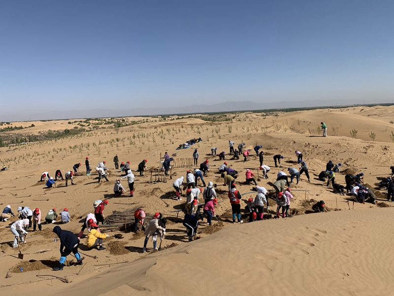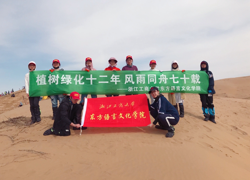 我校“植树小分队”于4月28日从杭州出发前往恩格贝,于4月29日中午到达库布齐沙漠恩格贝生态示范区。4月30日至5月1日期间,中日青年齐心协力,共同合作,沙漠开出绿洲,友谊结出果实。两天时间一共种下了1630棵树苗。