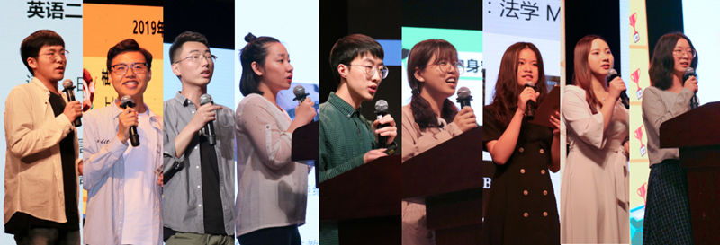 经过前期各学院推荐,学生处组织评委选拔(18个二级学院各推荐一人,再由学生处从中选拔一半人),本次有来自我院日语1501班邵言同学及财务与会计学院张智骁、统计与数学学院雷奇彪、经济学院张志杰、金融学院沈白翎、食品与生物工程学院陈彦培、计算机与信息工程学院舒港琪、法学院马昭、公共管理学院李程琳等9位成功考研录取的同学参加宣讲,他们被国内、外知名高校录取。交流会上,他们结合自身的经历和感想从院校选择、复习方法、时间规划、心理调节、应试状态、复试准备、出国申请、保研准备等方面进行了分享,风趣幽默的讲述、图文并茂的展示、深入浅出的交流赢得了现场的阵阵掌声。会上,增加的现场提问环节,更加拉近了同学们与学长学姐的距离,为其备考路上遇到的困难进行了解答。为了活跃气氛,现场还增设了大屏幕留言互动“上墙”和随机抽奖环节,让同学们乐在其中、收获其中。
