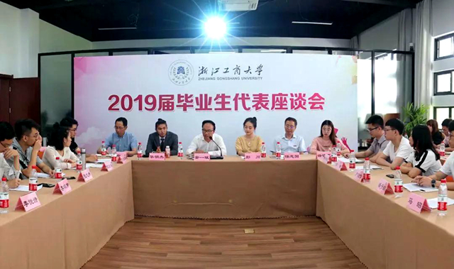现已被对外经济贸易大学日语口译专业录取为研究生的邵言表达了自己作为学校国际化教育受益者的感受:“文化冲突依旧层出不穷,中日友好的大厦依旧在等待我们添砖加瓦。作为新时代的社会主义建设者,我们对此有着义不容辞的责任。”她会继续践行传播者的使命,为中日友好贡献自己的一份力量,“哪怕微不足道,总有一天能够汇聚成万家灯火照亮黑夜。” 在参加座谈会的毕业生中,有的获得高额奖学金考取中外名校研究生继续深造,执着追求自己的梦想;有的考上公务员,在政府部门中服务群众;有的创办自己的公司、获得数轮融资,在创新创业中发光发热……他们来自不同的学院,有不同的过往与未来,但此时他们坐在一起畅所欲言,不仅讲述了自己在商大的青春故事,还展望未来、为母校的发展提出各自的见解,并对母校致以深情的祝福。金一斌认真听取毕业生们的建议,并对大家提出的问题做了细致的回答,交流会氛围轻松而愉悦。 金一斌对毕业生们通过不懈努力完成学业表示热烈祝贺,对大家即将开启新的人生旅程给予诚挚祝福。“中华民族的昨天,可以说是‘雄关漫道真如铁’;中华民族的今天,正可谓‘人间正道是沧桑’;中华民族的明天,可以说是‘长风破浪会有时’”,金一斌引用习近平总书记在参观《复兴之路》后的讲话勉励毕业生坚定理想信念,掌舵人生方向;拼搏奋斗,积淀人生厚度;敢于担当,成就一番事业。“古今人才遥想望、学成致用实效彰、同表东海风泱泱”,金一斌最后用校歌中的三句话寄语毕业生,希望大家在磨炼意志中“修身齐家”,在为社会创造价值的责任担当中“治国平天下”,表达对毕业生的殷切期望。 金一斌还向毕业生代表们赠送了毕业纪念品——为毕业生代表量身定制的人脸3D打印学士服卡通塑像,为每一位浙小商留下独一无二的宝贵记忆。 会议由校党委副书记任志国主持。党办校办、宣传部、学生处、教务处、招就处、社会合作处、团委、后勤中心、国教学院负责人参加座谈。(转自学校门户网站)