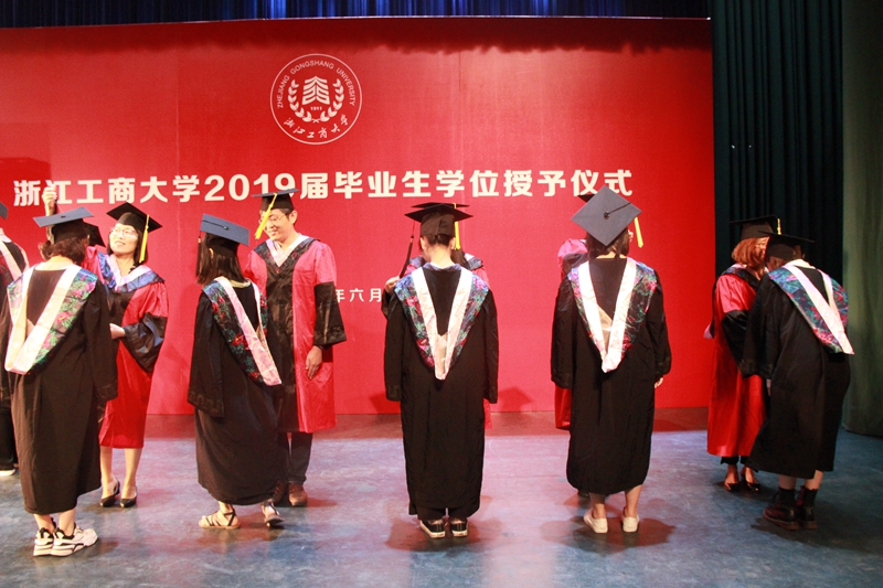 周书记逐一宣读获得学士学位的2019届本科毕业生名单,毕业生们依次上台接受导师们为他们拨穗并与老师们合影留念。最后,苏为华副校长代表学校逐一为毕业生颁发学位证书并合影留念。