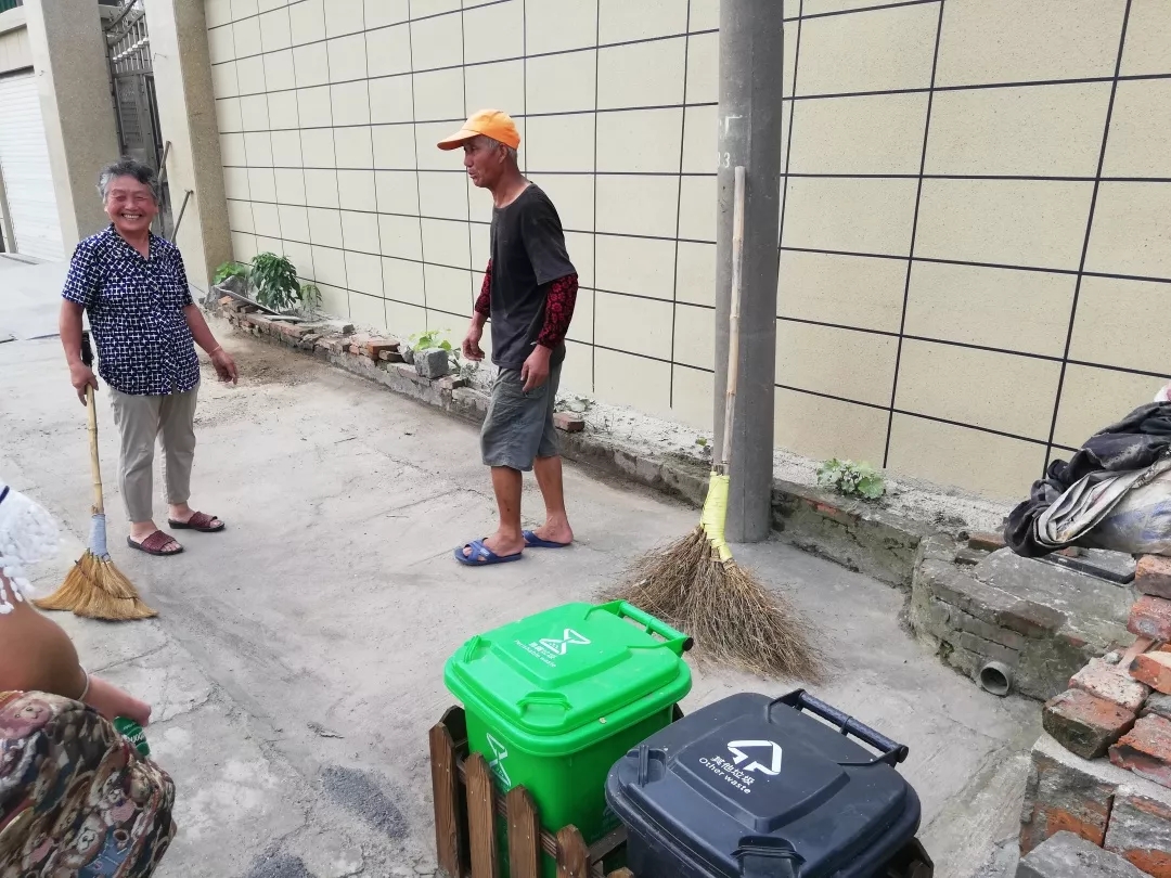 沿路考察的过程中遇到了正在打扫自家垃圾桶周边卫生的村民,他们亲切地和我们寒暄着,用不怎么标准的普通话骄傲地向我们展示自家垃圾分类的成果。