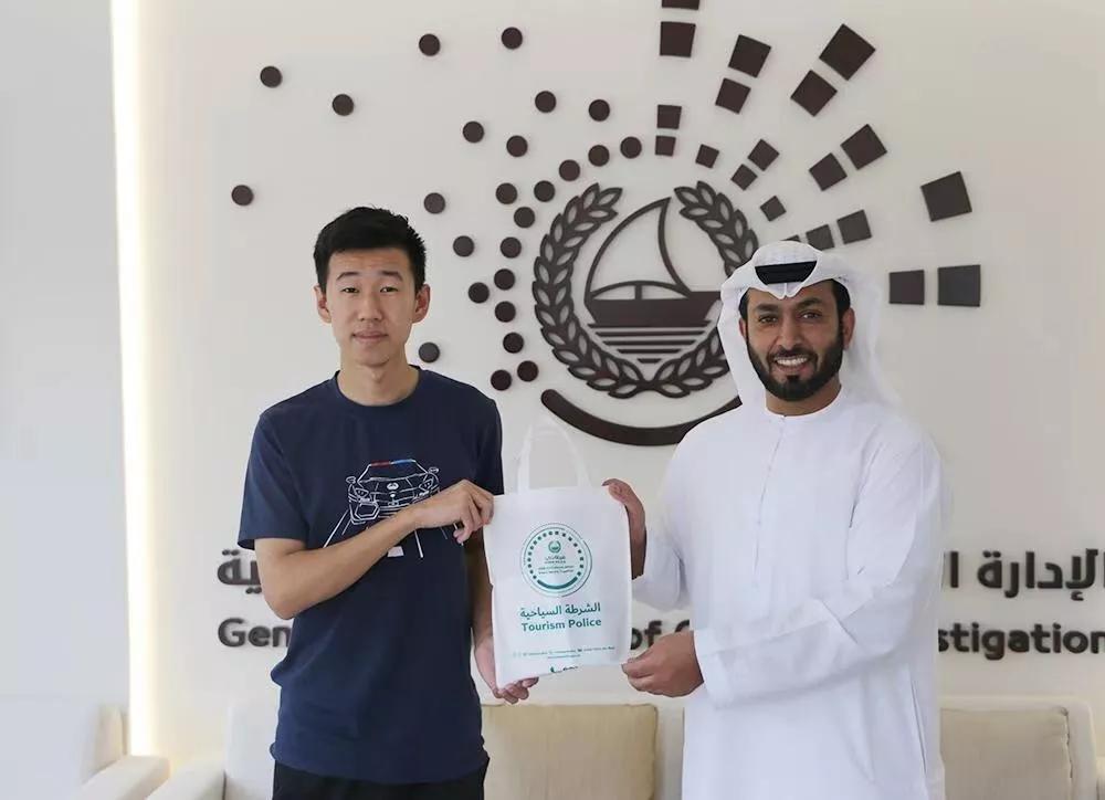 在取得阿语专四优秀的成绩后,张泽原大三将前往阿联酋沙迦大学学习一年。在学院“开拓实践平台”的培养理念和推荐下,他成功通过了简历筛选,获得了前往阿联酋迪拜政府的实习机会,也完成了个人职业规划上的一大重要节点。 阿联酋的全称是阿拉伯联合酋长国,它是由阿布扎比、迪拜、沙迦、哈伊马角、富查伊拉、乌姆盖万和阿治曼7个酋长国组成的联邦国家。张泽原所在的迪拜是第二大酋长国,仅次于首都阿布扎比。作为整个迪拜警察总部旅游署唯一一位非阿拉伯人,张泽原获得了大量外出工作的机会,也借此认识了许多阿拉伯朋友,走进了最真实的阿联酋生活。阿联酋是传统的伊斯兰国家,在工作时女性都会身着黑色的罩袍,而男性大部分会穿着白袍,当然警察也会穿警服和军装。 (张泽原的工作地点——迪拜政府警察总署) (穿着黑色罩袍的女性和穿警服的警官)