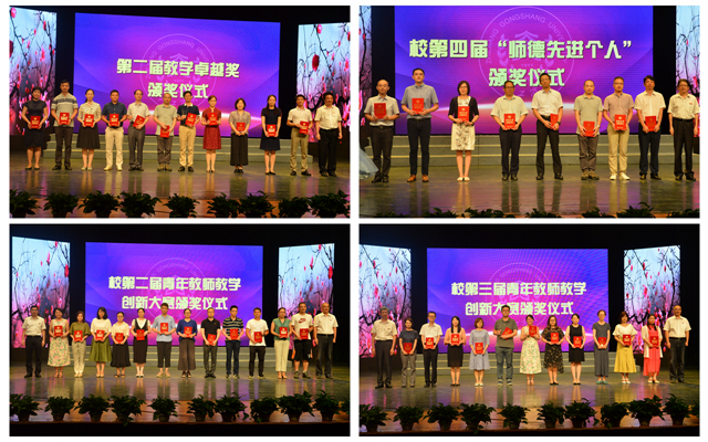 会上,表彰了2019年度浙江省第六届“师德标兵”、“师德先进个人”,2019年浙江省“向上向善好青年”,校第二届教学卓越奖获奖教师,校第四届“师德先进个人”获奖人员,校优秀教师、优秀教育工作者,校第二届、第三届青年教师教学创新大赛获奖教师,校领导为从事教学、教育工作满三十年的教职工代表颁发证书。