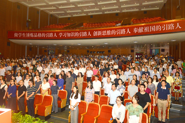 庆祝第35个教师节总结表彰大会在下沙校区剧院召开。学校全体党政班子成员,从事教学、教育工作满三十年的教职工,校级及以上先进个人代表,2019年新教师代表,校职能部门负责人,二级党组织书记,教职工代表,学生代表参加大会。获2019年校优秀教师的我院日语系贾临宇、获校第二届教学卓越奖提名奖的阿语系主任周玲等老师受到表彰。