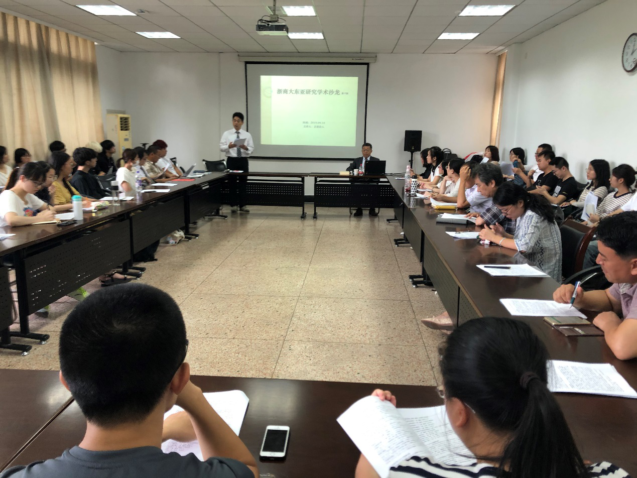 9月18日下午第17期浙商大东亚研究学术沙龙在空姐 202会议室举行,此学术活动我们邀请早稻田大学吉原浩人教授做了专题报告,题为:“天竺霊鷲山的形象―敦煌から『当麻曼荼羅』『善光寺如来絵伝』へ―(天竺灵鹫山的形象―自敦煌至《当麻曼荼罗》《善光寺如来绘传)”。讲座由我院久保辉幸副教授主持,我院教师和研究生共有60人参加。