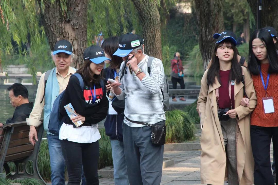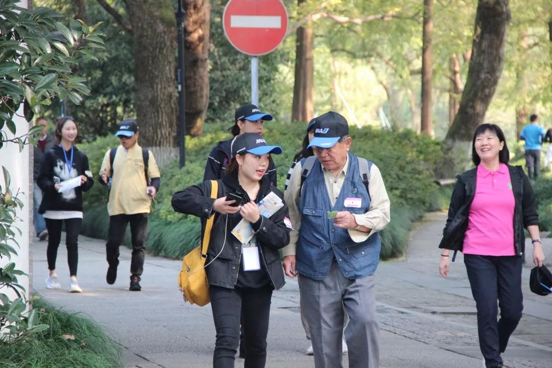 清晨的西湖游人尚稀,暖阳如新。尽管是初次相遇,但在全长6.5公里的徒步过程中,志愿者们一边陪同徒步,一边热情地向日本友人们讲解西湖美景、交流有趣话题。