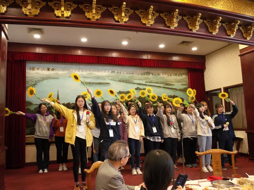 场中响起轻柔的音乐伴奏,我院学生们走上舞台,深情唱响一曲《我和我的祖国》,表达他们对祖国母亲的眷恋。随后又为日本客人带来一首《世界に一つだけの花 》,悠扬的曲调配合同学们手中轻轻摇摆的金色向日葵,场中的气氛和谐而温馨。