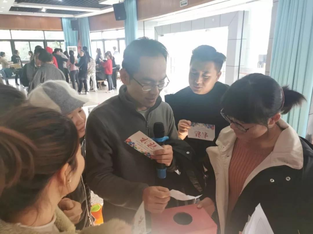集满校训“诚毅勤朴”四个字的印章后,老师们来到了solo环节——“我爱记歌词”。在这里老师们又化身为实打实的麦霸,“把你的心我的心串一串,串一株幸运草串一个同心圆”“跟着我左手右手一个慢动作,右手左手慢动作重播”,无论是经典老歌,还是流行音乐,他们是张口就来。