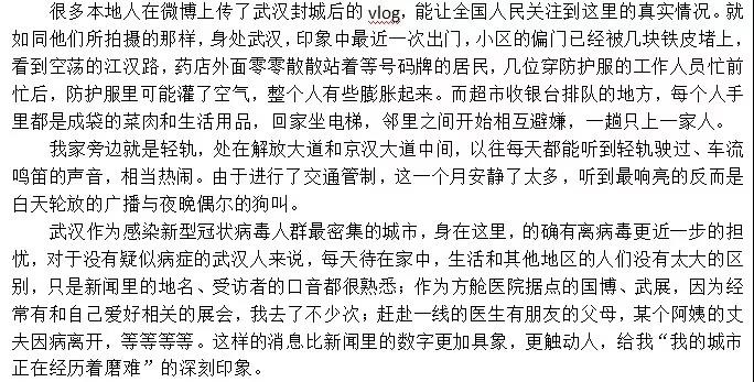 3. 有的同学挂念一线医护人员,她说:一线的医护人员面临着巨大的压力和危险。一定要保护好我们的医护人员!不仅是生理上的,也是心理上的。