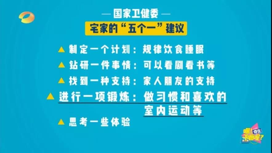 中科院心理所副所长陈雪峰提出,“目前,疫情防控需要我们尽量做到少出门、不聚会,这是有效阻断疾病传播的方式。”长时间待在室内,可能会出现烦躁、焦虑的情绪,出现频繁刷手机、作息紊乱等情况,其实最主要的原因是生活方式改变带来的不适。为改变身心不适、调整好生活方式,国家卫健委提出宅家“五个一”建议。为响应建议,班级团支部成员积极建言献策,特拟出以下几点内容:
