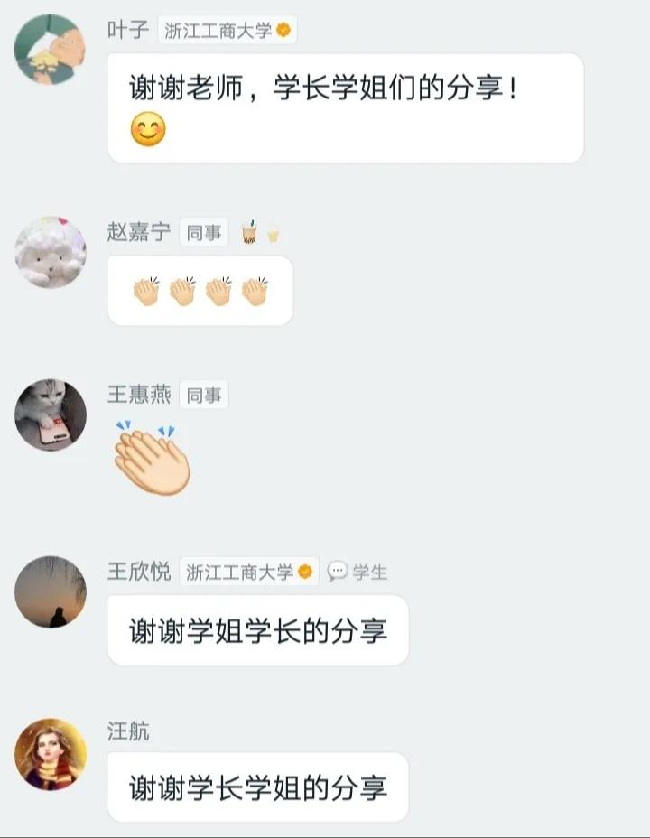 在听完五位校友们的倾情分享后,17级同学们纷纷表示受益匪浅,对学长学姐们表达了由衷地感谢。日语1701班植洁丽表示,在看到学长学姐们的分享后很受鼓舞,希望能向他们看齐,只争朝夕,不负韶华,坚定追逐自己的梦想。