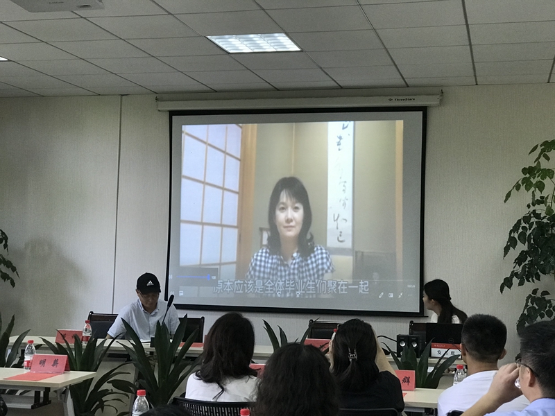 随后,教师代表哲学系丁建华副教授致辞,他分享了自己的人生体会,为毕业生提供了珍贵的人生建议。由于疫情原因,外教老师们身在日本无法参与本次毕业典礼,但服部美有老师、冈田重美老师仍然通过视频传递对毕业生的祝福和不舍。