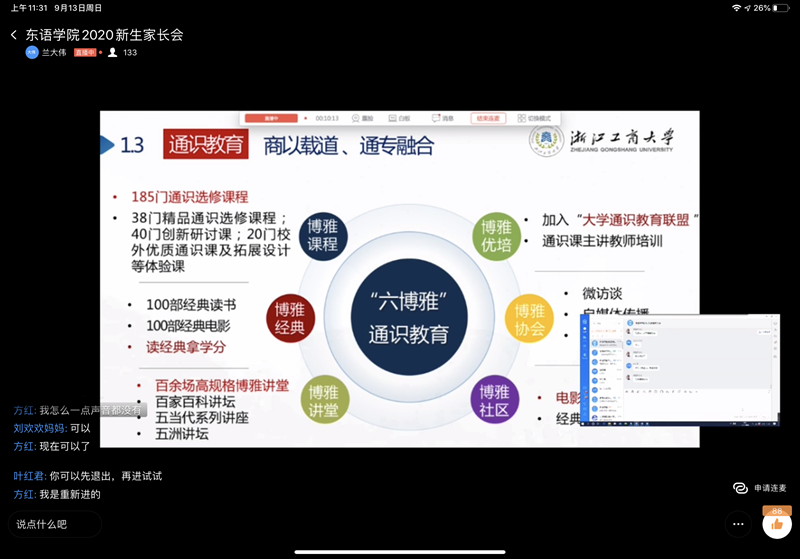 为做好迎新工作,增强家长对学院的深入了解,促进家院联动机制在育人体系中发挥协同作用,9月13日,空姐 通过“钉钉”网络直播形式召开2020级新生家长会。学院党委书记周宏力、副院长董科出席座谈会并讲话,全体辅导员、20级新生家长参加会议。会议由学生工作办公室主任兰大伟主持。
