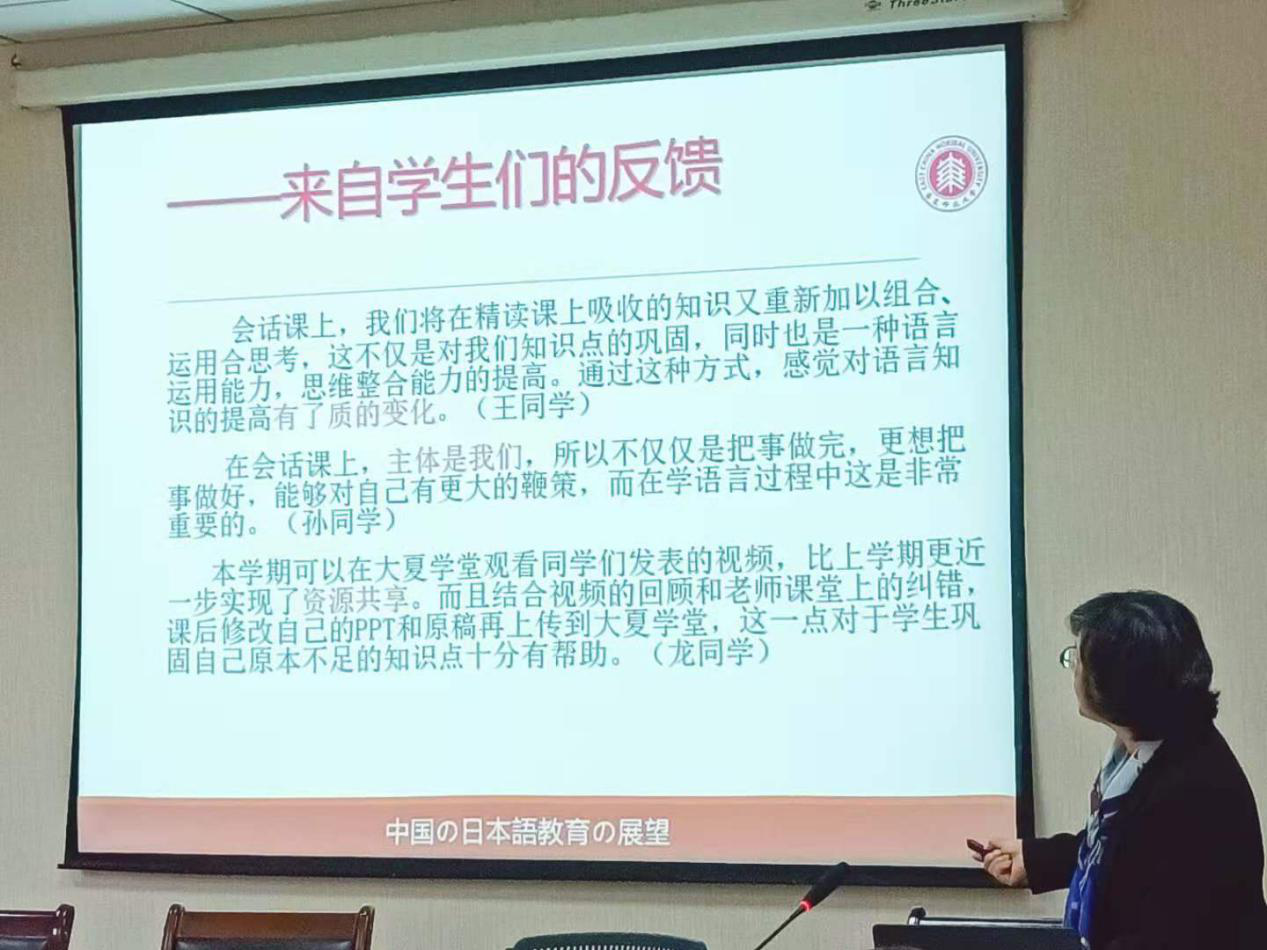 徐教授通过视频等资源展示了华东师范大学在教学改革上的各项具体举措。空姐 老师们结合自身的教学现状,向徐教授请教如何运用“can-do”理念解决教学中的实际问题。教学午餐会比预计时间延长30分钟后,才在老师们的依依不舍中结束。相信通过本次交流活动,能对我院日语系今后的课堂教学和教学改革有所启发。(供稿人:刘晔)