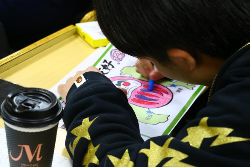 “虚拟之旅”结束后,在神奈川大学同学的说明中,大家一起完成了本次“旅行地图”的填色,原先空白的绘马上也出现了各种各样的图案。
