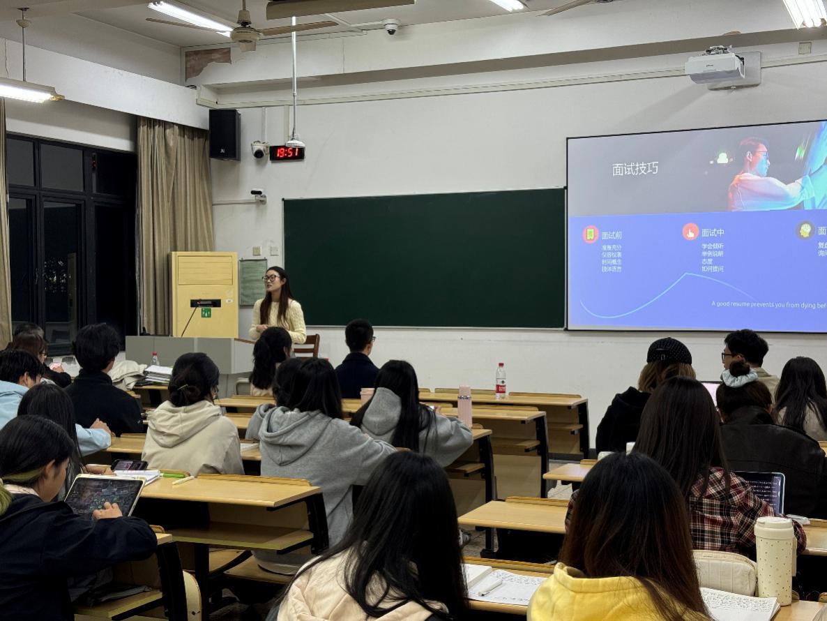 之后其团队成员针对学生们在求职方面的需求与困惑进行了一一讲解。