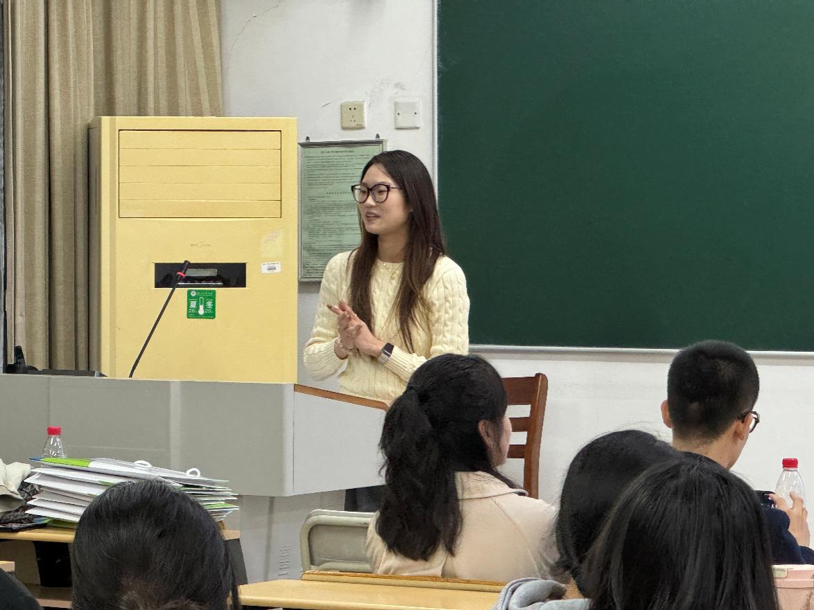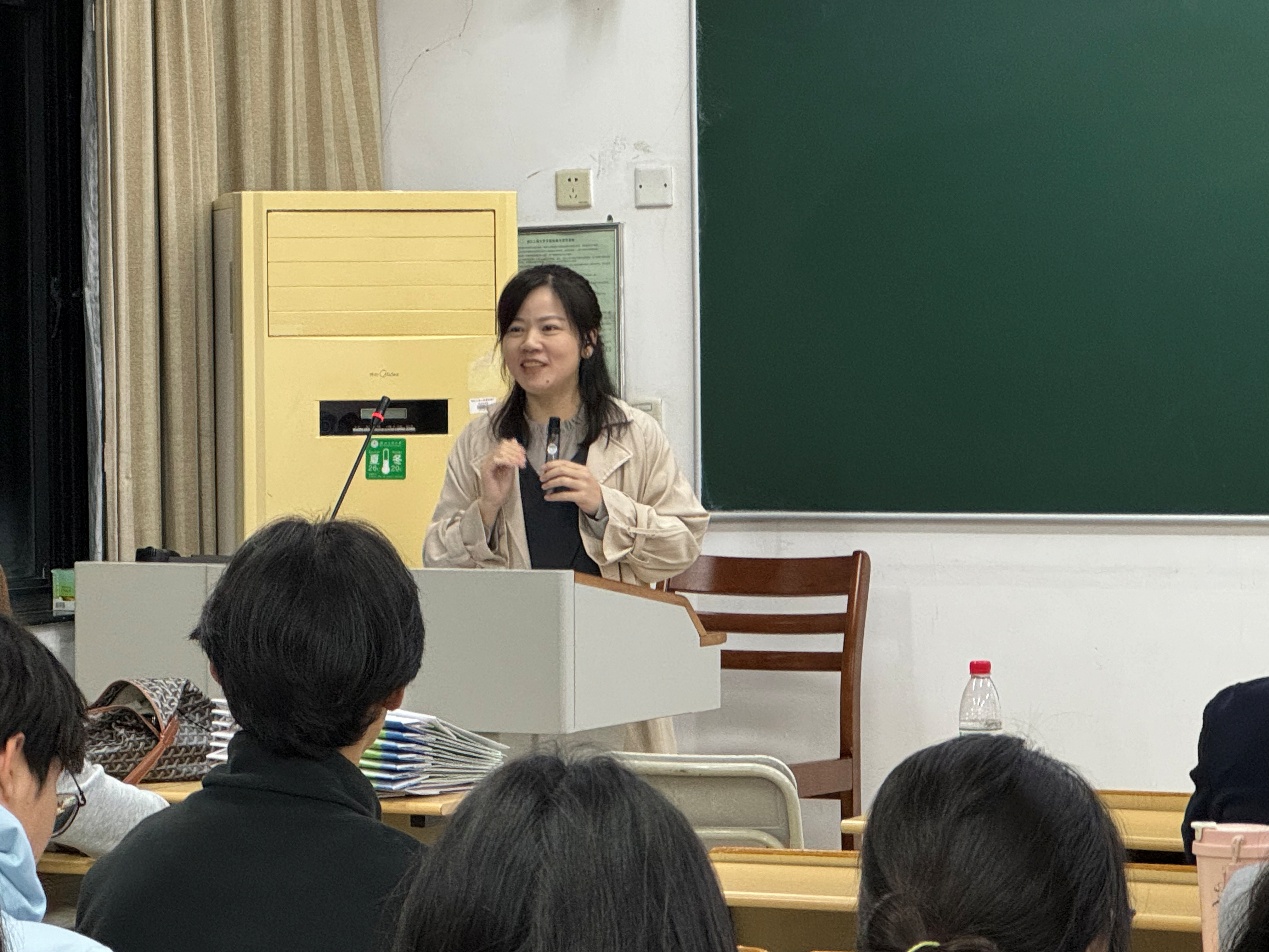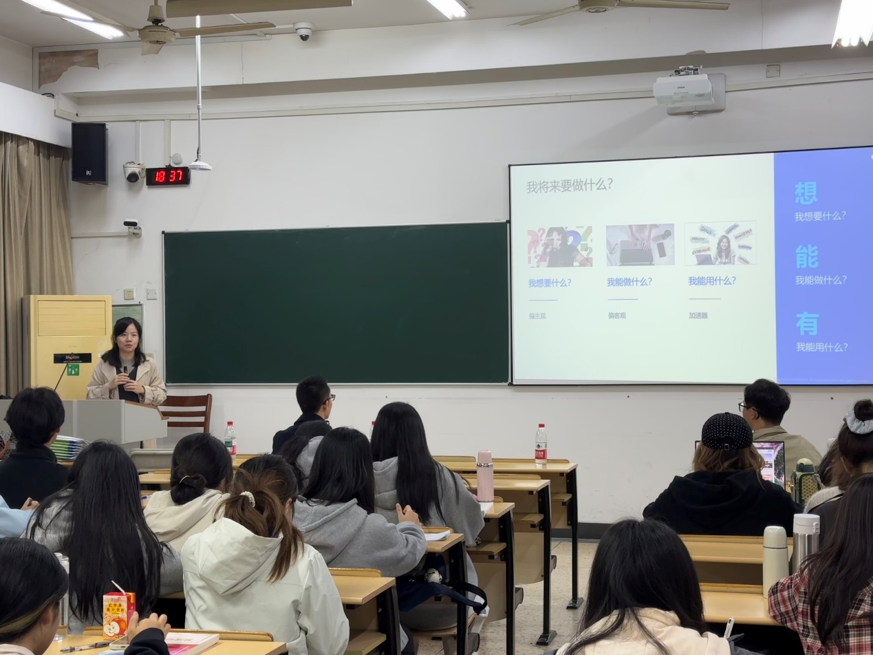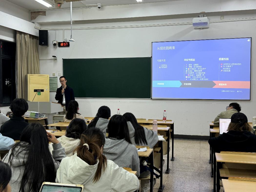 当课堂知识与行业前沿碰撞,会擦出怎样的火花?10月29日下午,日语系邀请到我院首届日语专业优秀毕业生,现任凯捷技术咨询(杭州)有限公司集团金融事业部中华区招聘经理的施玉玲学姐带着其团队一行受邀走进《大学生职业发展规划》课堂,五位嘉宾带着丰富的行业经验、前沿的职场洞察,为同学们带来了生动的一课。本次活动由张政老师主持。