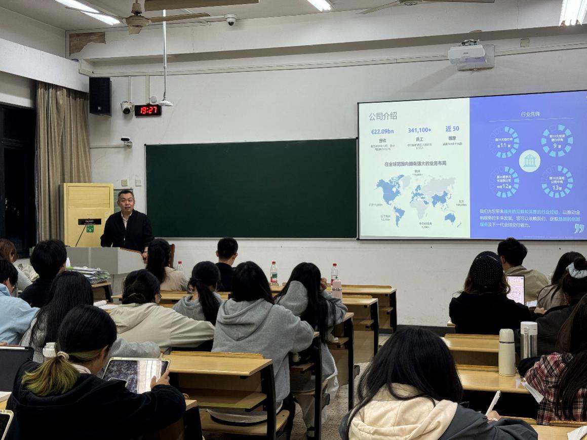 施玉玲首先向24级同学介绍了凯捷集团的基本情况。凯捷集团是一家具有50多年悠久历史的欧洲咨询公司。凯捷中国扎根中国27年,拥有强大的咨询专家团队和数字化能力沉淀,在大数据、人工智能、可持续发展等方面为客户提供最新技术应用和解决方案,其曾帮助多家在华外资企业和中国本土企业加速数字化转型之旅。